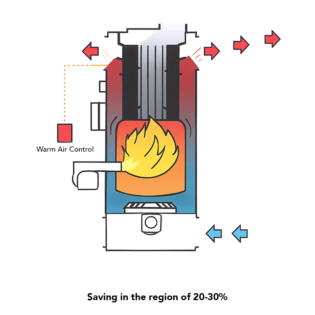 The result: more useful heat delivered to the warehouse, not lost up the flue